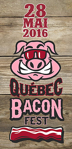 Le samedi 28 mai 2016, le QUÉBEC BACON FEST, l’ultime fête du bacon, atteindra pour la première fois la capitale. De la poutine au bacon, jusqu’à la saucisse au bacon, en passant par les bacon-bonbons, les sundaes au bacon, la bière au bacon, les fudges au bacon en plus des biscuits Oréo au bacon, du macaroni au fromage enrobé de bacon et des fameuses bombes de bacon gratinées, le QUÉBEC BACON FEST offrira un très large éventail de produits décadents à base de la fameuse viande de porc salé.