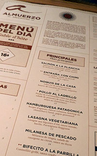 L'assiette est toujours dans l'esprit du premier restaurant l'Atelier d'Argentine, situé dans le Vieux-Montréal, avec cependant un peu moins de recherche dans la présentation des assiettes. On devrait aussi faire attention à la qualité des frites. Mais le goût est là, surtout si l'on est amateur de viande rouge. Selon la tradition culinaire argentine, on propose ici des viandes cuites sur la grille. C'est la place.