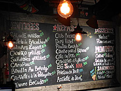 La carte est affichée sur des tableaux noirs. Le choix est restreint, mais largement suffisant. Le menu est typiquement portugais, sauf la poutine (pour les gros appétits tant elle est démesurée). Le décor est sympathique, il sacrifie à la mode des intérieurs de fabrique avec ses roues de charrette tombant au dessus de la cuisine, des tuyaux apparents, des robinets servant de porte manteau. C’est accueillant.