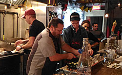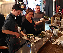 Un comptoir ce n’est jamais bien confortable, mais la vue de la cuisine, de tout ce monde avec qui nous parlions tandis qu’ils s’affairaient à préparer les plats, est des plus réjouissants, surtout quand cela se passe dans la rapidité et la bonne humeur. C’est vrai que ce n’est pas grand, la salle est vite remplie, nous avons eu de la chance, mais nous vous conseillons de réserver, ou peut-être d’y aller un midi.