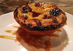 Pour le dessert, nous avons succombé à la tartelette portugaise, un flan au cœur d’une patte feuilletée « Pasteis de Nata », suave, moelleuse, sensuelle en bouche. Cela faisait longtemps que nous en avions mangé. Un vrai plaisir!
