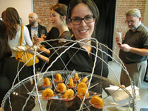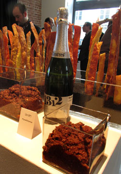 Le menu qui les accompagnait se déclinait en trois volets : 7 vins et un thé choisis par François Chartier; les huit bouchées d’Agnus Dei; la description des huit harmonies. François Chartier nous a recommandé de passer de l’un à l’autre et d’y revenir en un exercice à trois temps semblable à la danse chachacha (vin + bouchée + vin = chachacha).