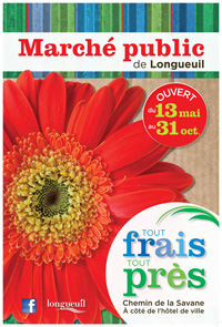 C’est l’Association des jardiniers maraîchers du Québec qui agira comme gestionnaire du marché. Le Marché public de Longueuil est situé sur le chemin de la Savane, à côté de l’hôtel de ville, et sera ouvert cette année jusqu’au 31 octobre. Les heures d’ouverture du marché sont du lundi au dimanche de 9h à 18h et les jeudis et vendredis de 9h à 20h.