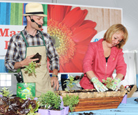 La mairesse de Longueuil Caroline St-Hilaire en compagnie d’Albert Mondor, auteur et horticulteur, lors de l’ouverture du marché public de Longueuil le 13 mai dernier