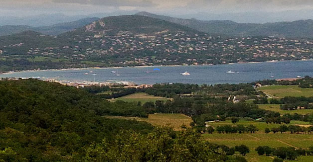 On y voit aussi la mer Méditerranée, du Golfe de Saint-Tropez jusqu’aux falaises de l’Estérel. Par beau temps, nous dit la propriétaire du restaurant, on y aperçoit la Corse !