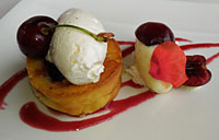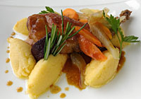 Sylvain, le chef propriétaire, et son épouse ont acheté ce restaurant en 2005. Le premier officie à la cuisine et la seconde supervise le service de salle, entre autres. Il nous a régalés avec cuisse de lapin… un baba au rhum composé de trois mini-babas superbement trempés de sirop parfumé au rhum ancien.
